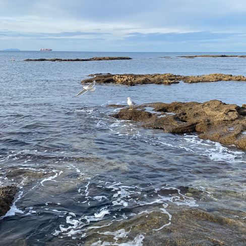 After a long sleep we woke up to the view: blue sky, beautiful sea! Gigi seduced me to go out and the long walk ended with a swim in the sea (that is Gigi not me).